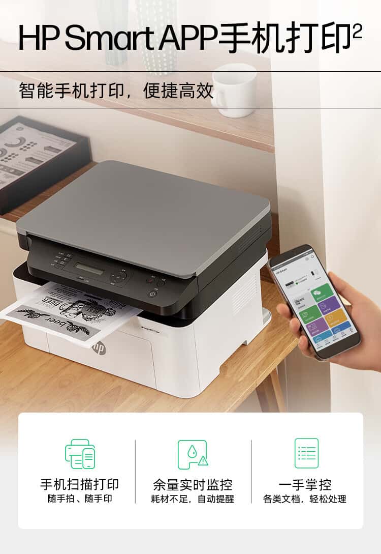 惠普(HP)1005w黑白激光多功能打印机学生家用三合一打印机家用无线作业打印商用打印创系列