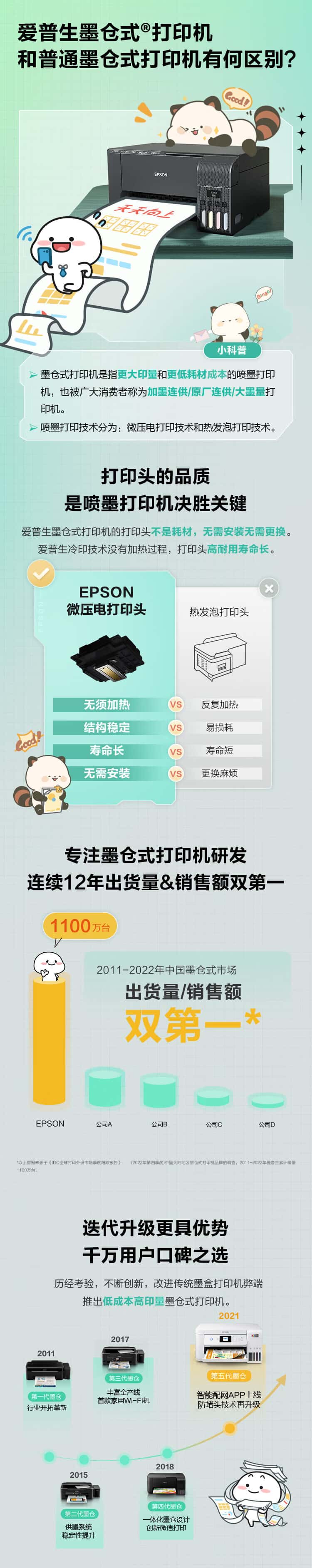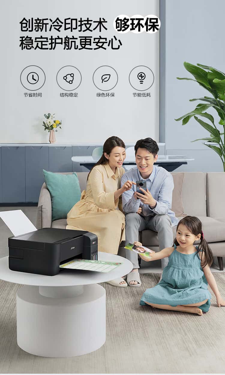 爱普生(EPSON)墨仓式L3255彩色打印机微信打印/无线连接家庭教育好帮手(打印、复印、扫描)