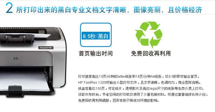 惠普(HP)P1108黑白激光打印机A4打印小型商用打印升级型号104a/104w同款体验型号P1106