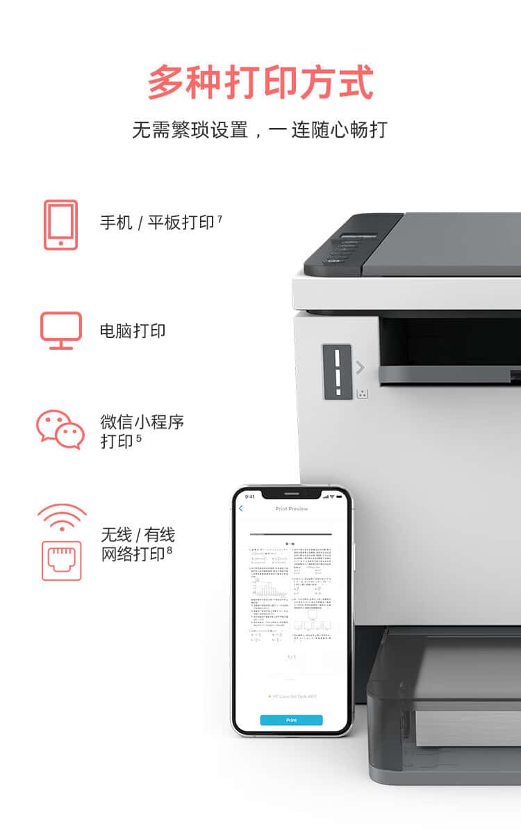 惠普(HP)1005w黑白激光多功能打印机学生家用三合一打印机家用无线作业打印商用打印创系列
