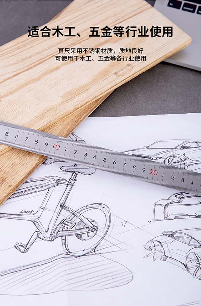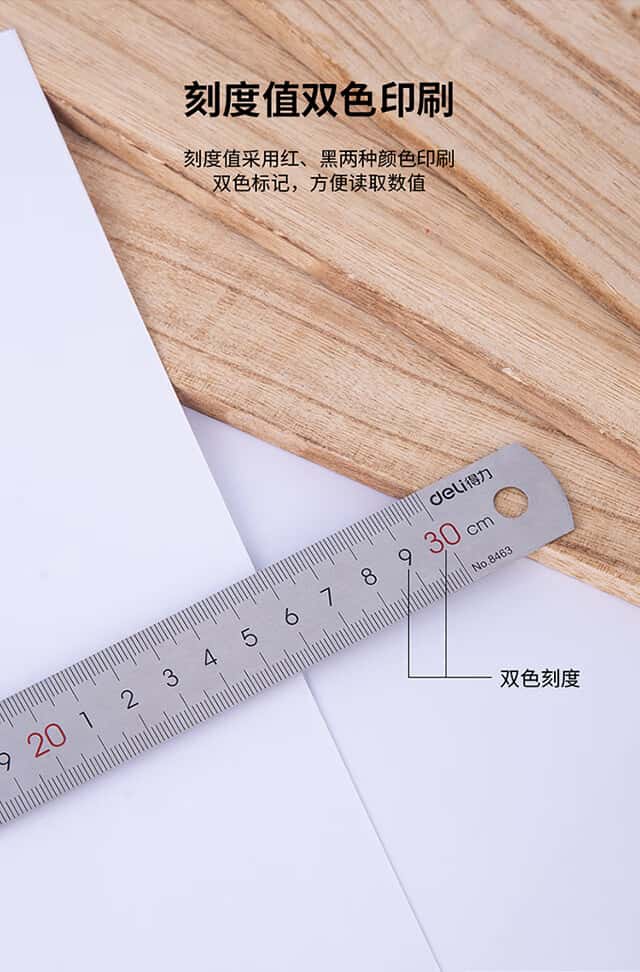 得力(deli)30cm不锈钢直尺测量绘图刻度尺子带公式换算表办公用品8463