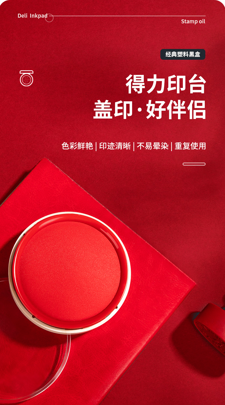 得力(deli)φ82mm透明圆形财务快干印台印泥办公用品红色9863