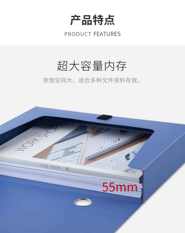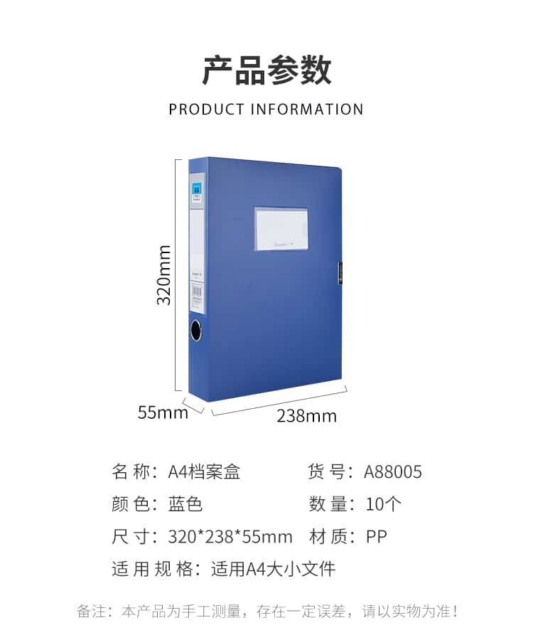 文具广博(GuangBo)10只55mm加宽塑料档案盒加厚文件盒资料盒财务凭证收纳盒办公用品A88005蓝色