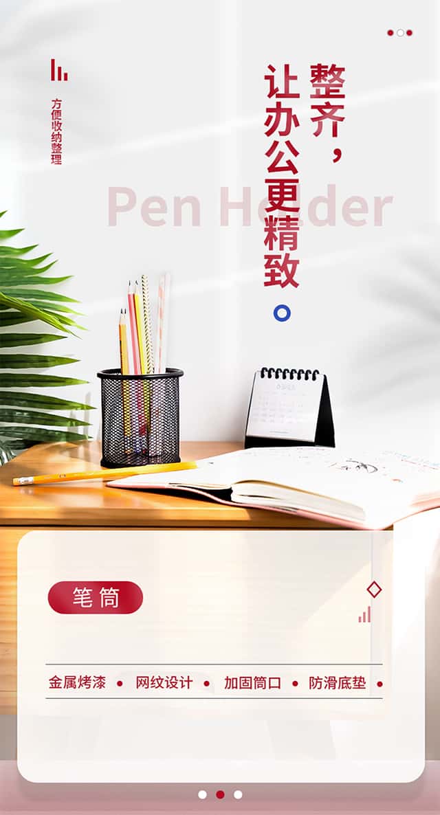 得力(deli)金属网纹圆形笔筒简约创意桌面收纳盒办公用品黑色9172