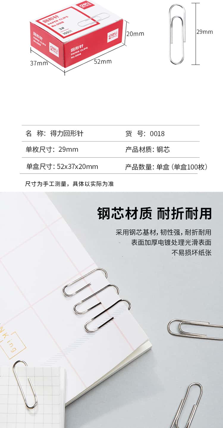 得力(deli)3#金属回形针镀镍防锈曲别针100枚/盒10盒装办公用品0018
