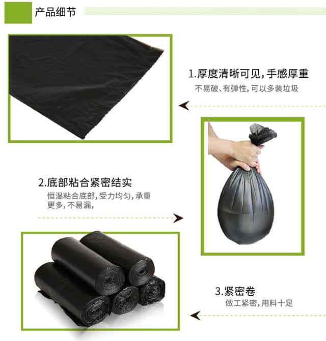 得力(deli)5卷(150只)办公生活垃圾袋45*55cm垃圾分类办公用品黑色33070