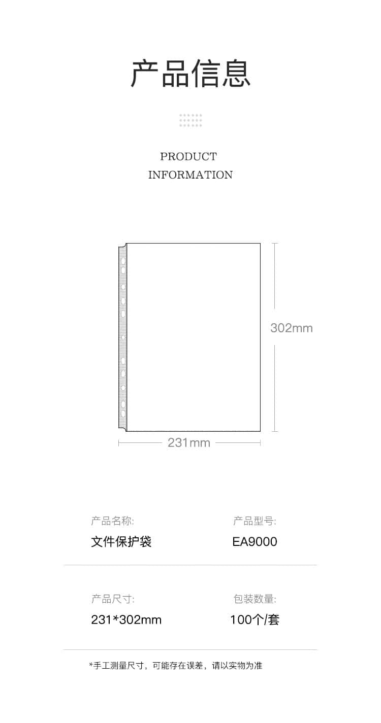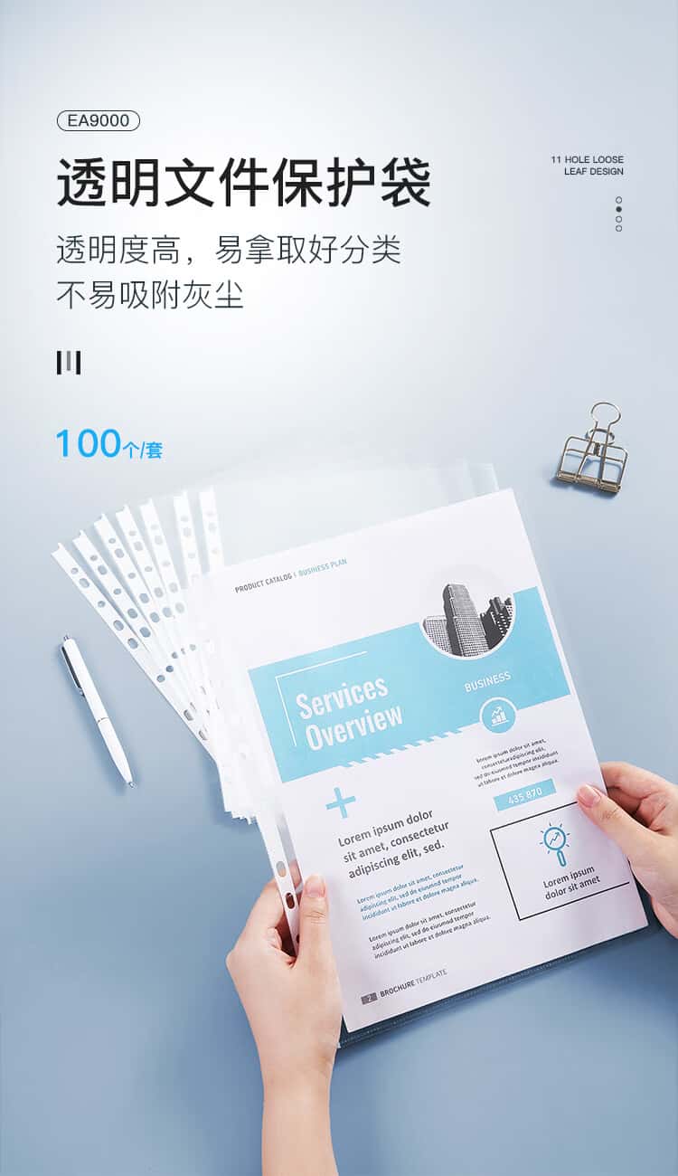 齐心(Comix)100只装11孔文件袋A4十一孔袋透明资料袋文件保护袋搭配快劳夹EA9000