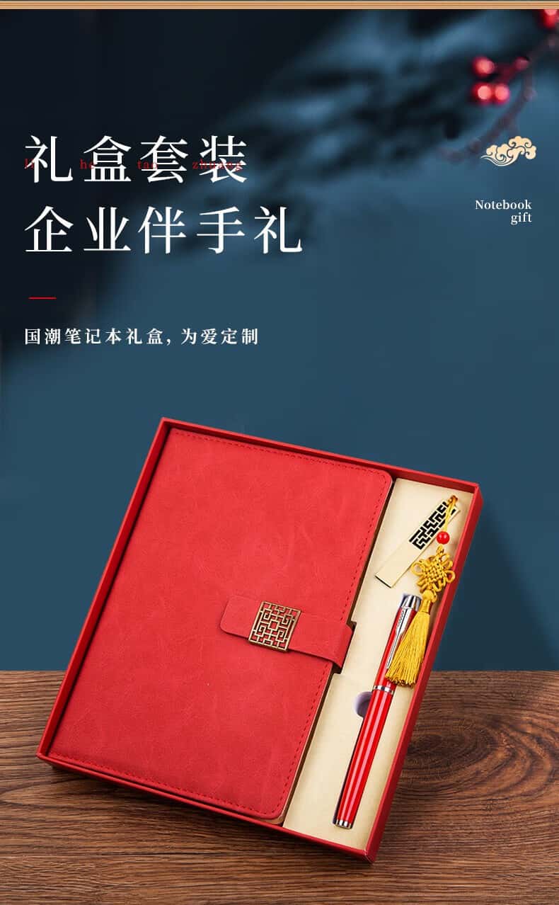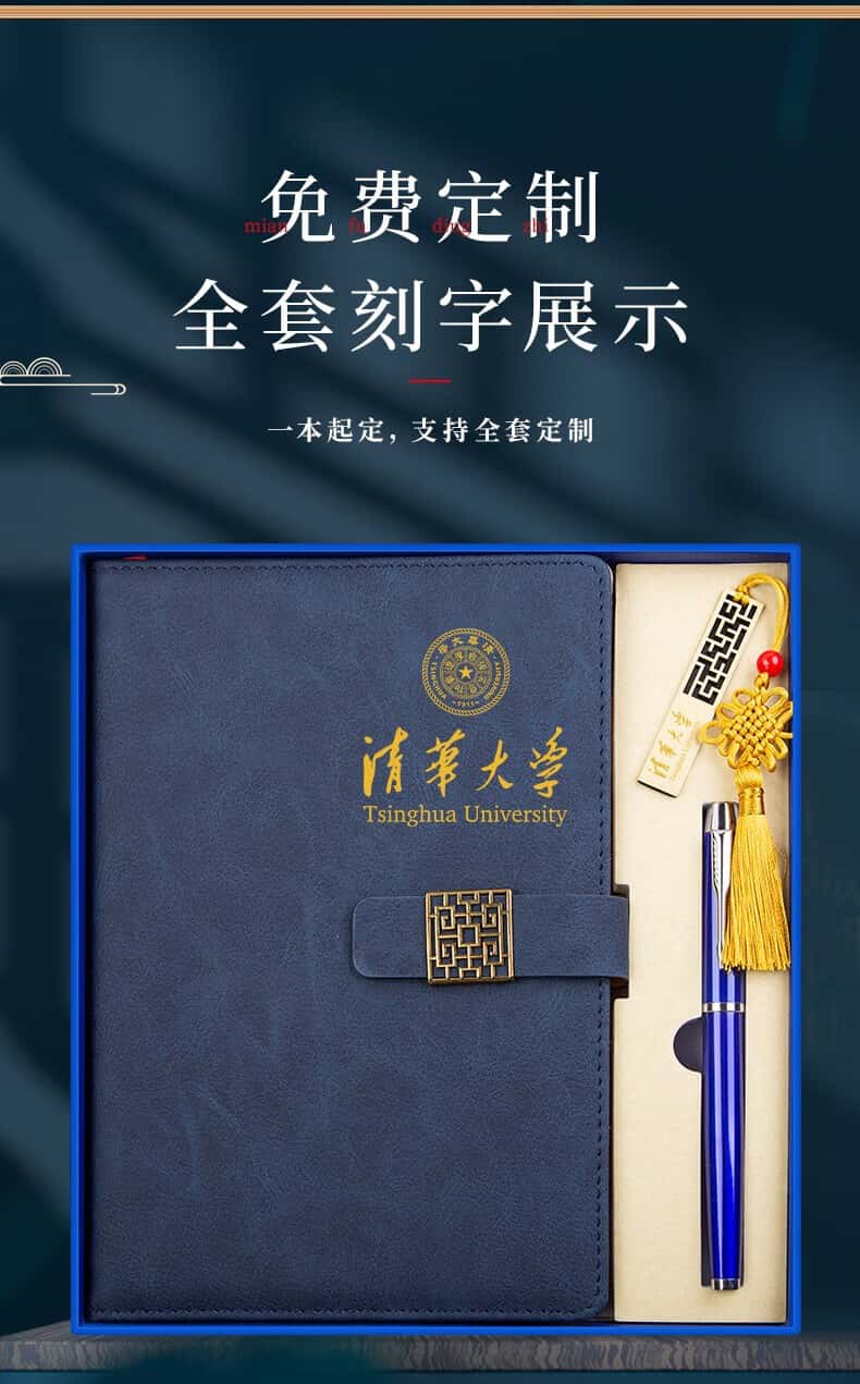 利潮笔记本定制可印logo商务年会礼品送客户员工周年庆会议活动实用伴手礼党员政治生日礼物退伍纪念品蓝-笔记本+签字笔套装