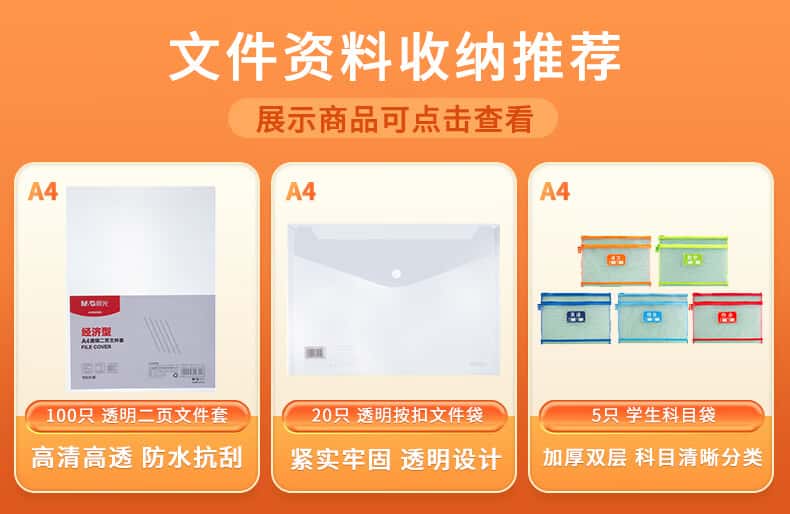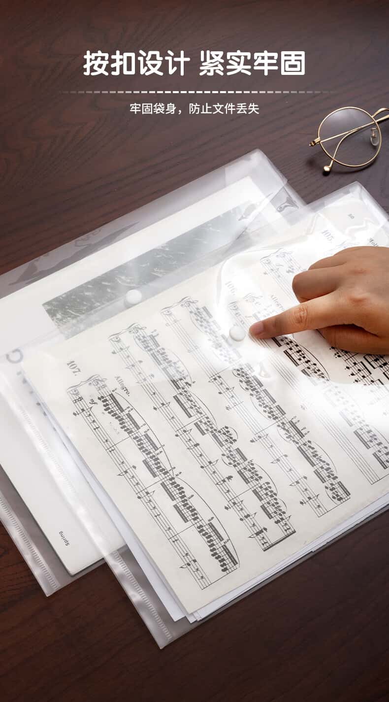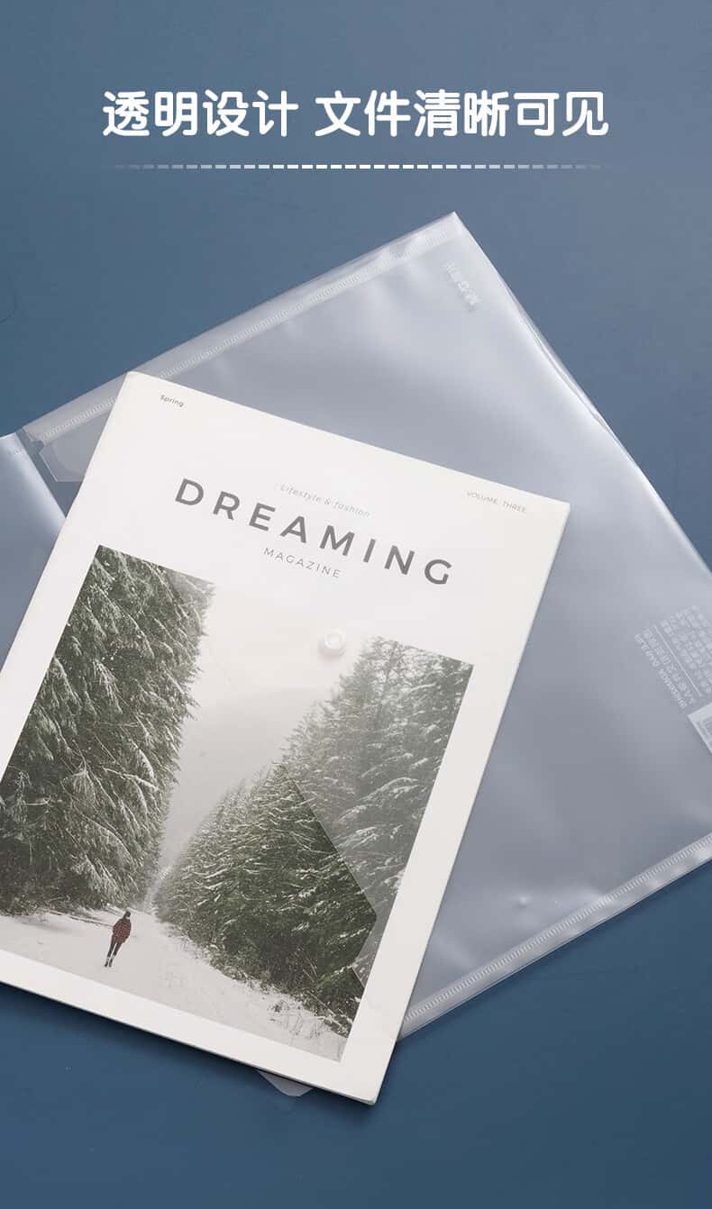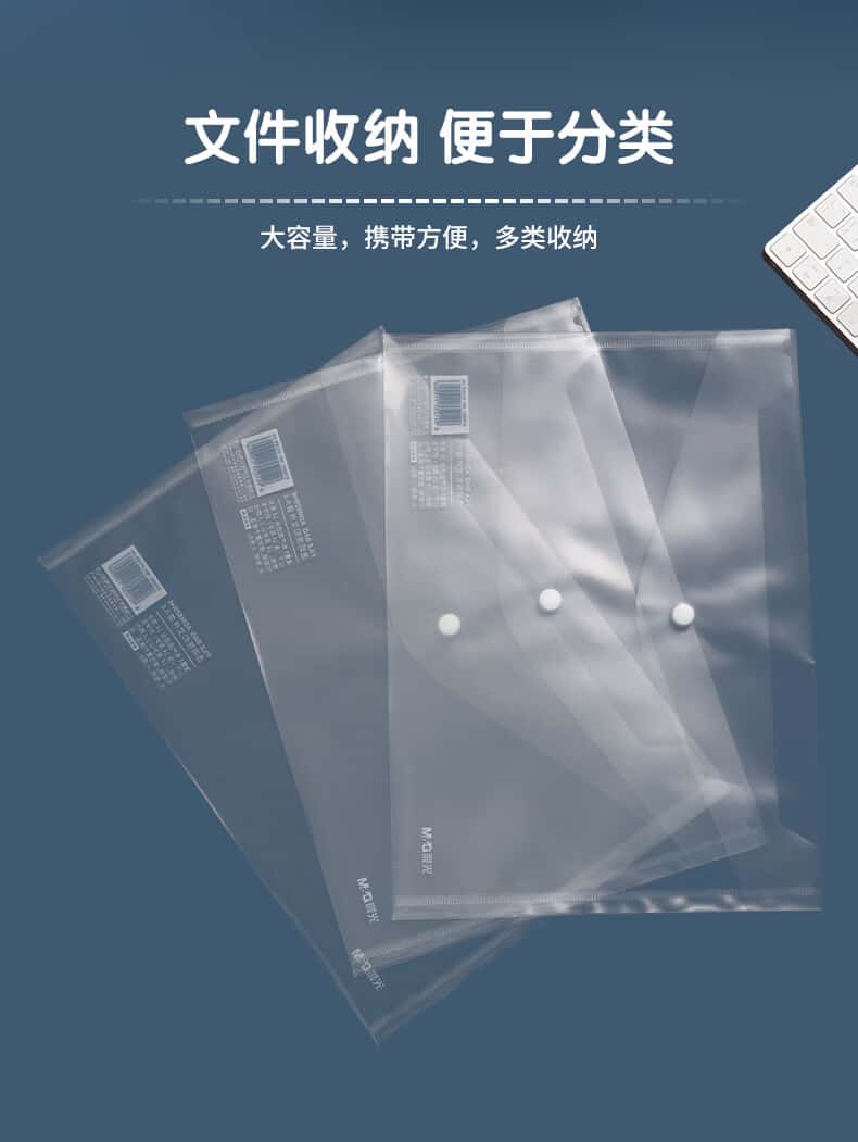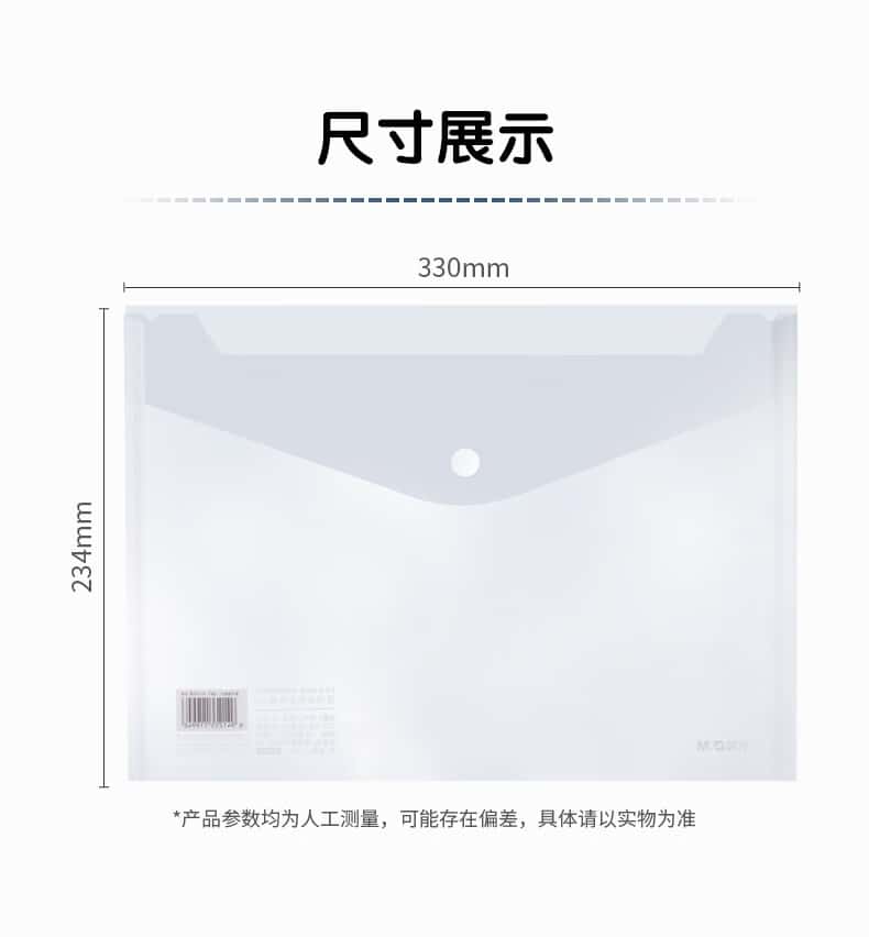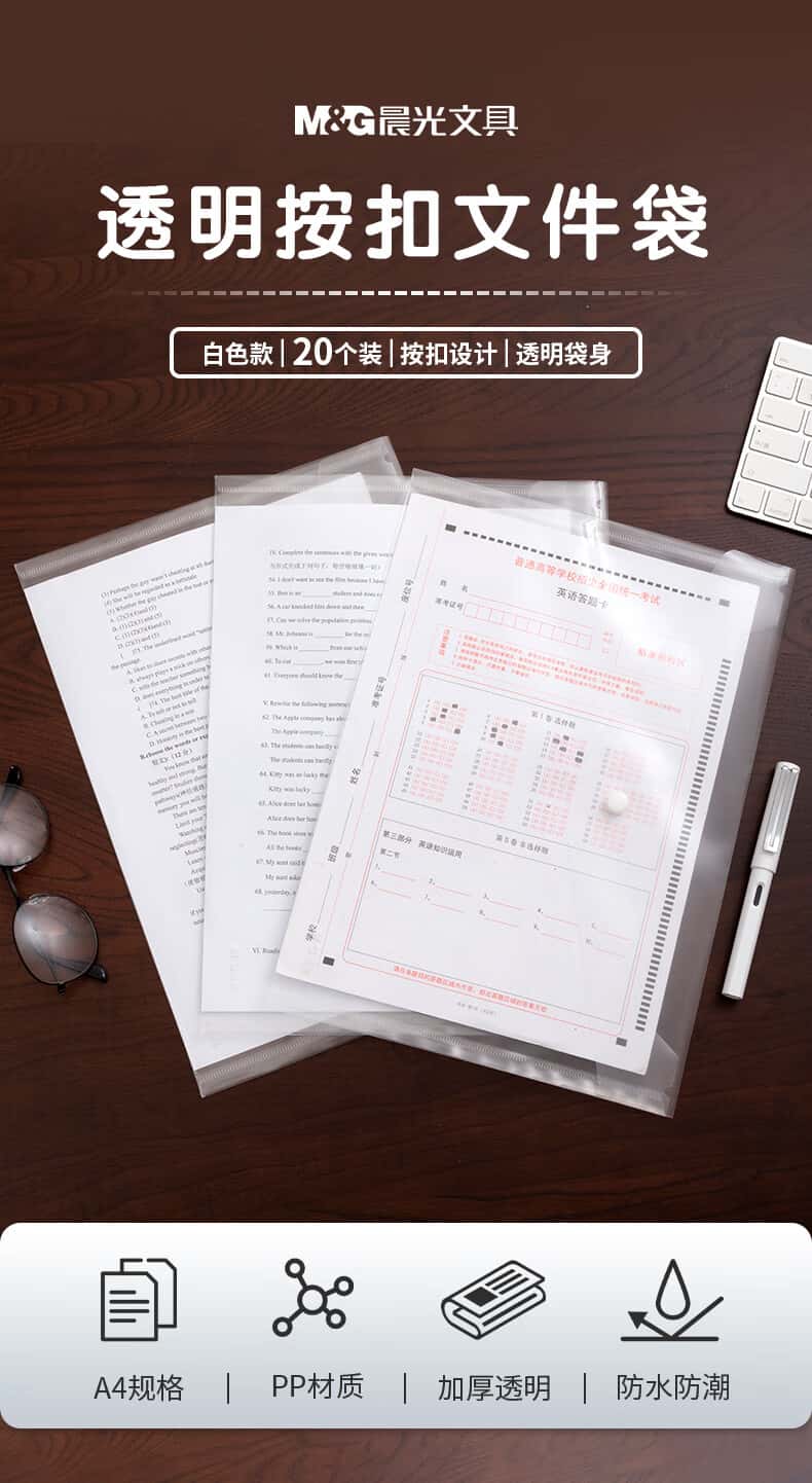晨光(M&G)20只A4按扣学生桌面透明文件袋试卷收纳资料袋开学学科分类办公用品塑料防水档案袋ADM929YR