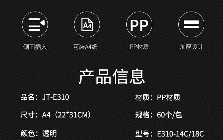 建腾A4单页资料夹层学生透明磨砂文件袋插页袋塑料办公L型透明文件套文件夹单片夹单页文件单片E310中厚60/包60个装