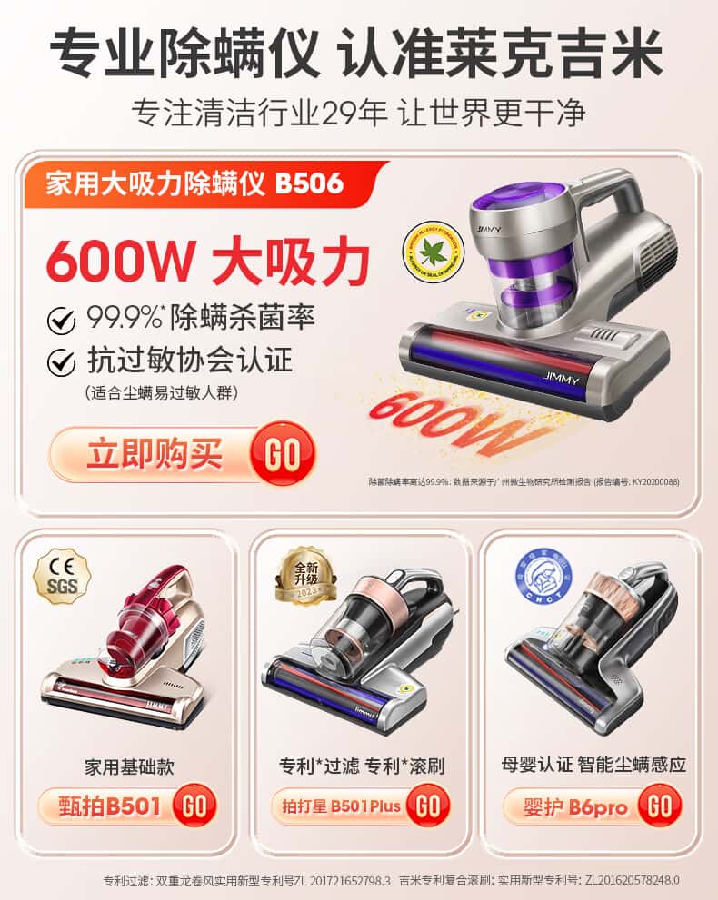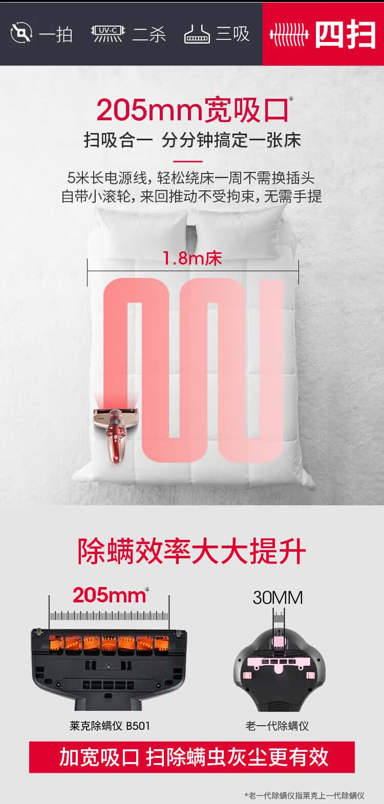 莱克吉米除螨仪B501家用床上小型手持紫外线杀菌吸尘神器去螨虫超声波升级款除螨机【甄拍B501】