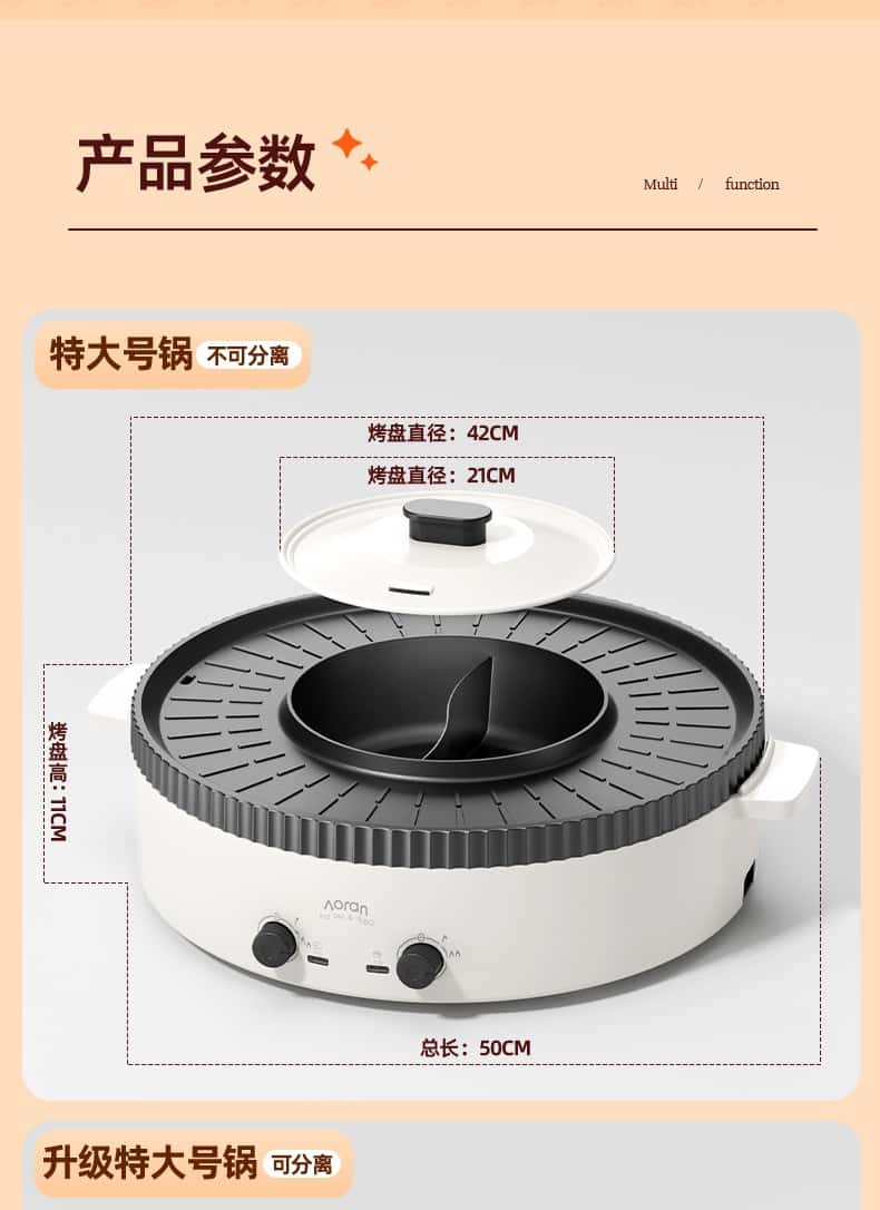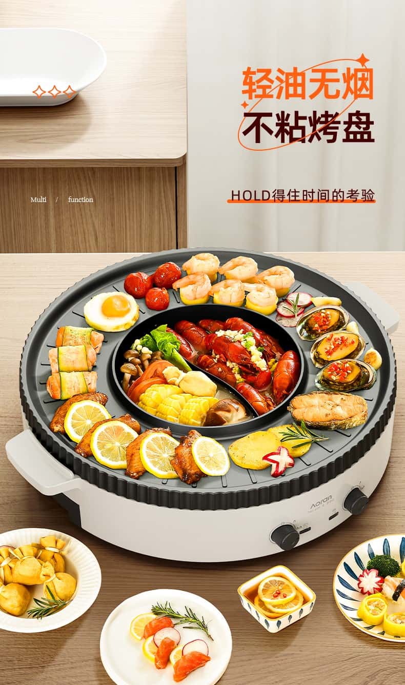 奥然电烤炉多功能烤涮一体锅家用无烟电烤肉盘烤串机多功能涮烤料理火锅分体式烤肉锅【超特大号】烤涮一体-圆锅单分离|3-15人