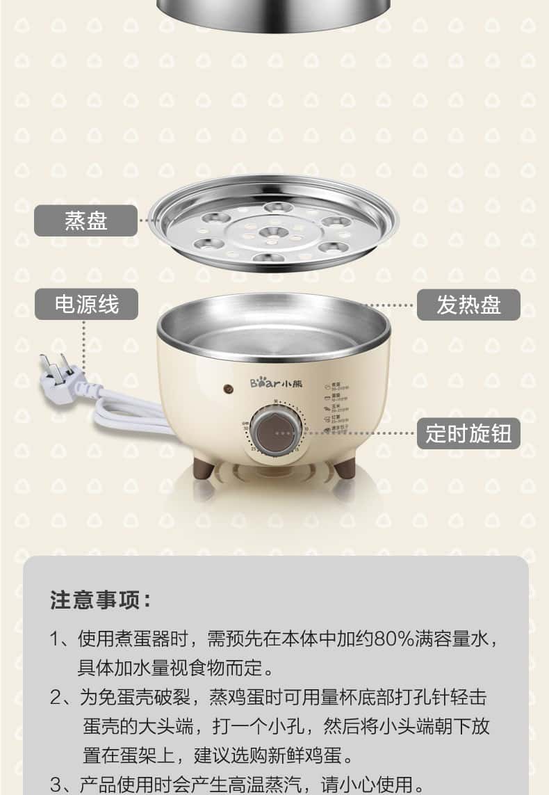 小熊(Bear)煮蛋器小型家用电蒸锅可定时不锈钢蒸蛋器自动断电蒸锅鸡蛋羹迷你鸡蛋器【旋钮定时+304不锈钢】ZDQ-B07C3