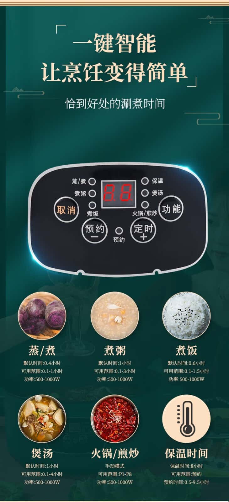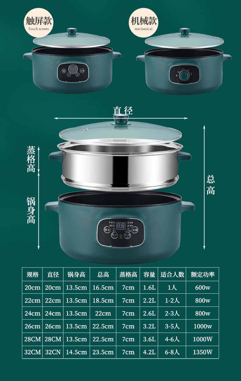 康雅顺蒸锅家用智能电蒸锅多功能双层三层预约定时多层蒸笼蒸馒头蒸煮锅304不锈钢智能版24四层【墨绿】